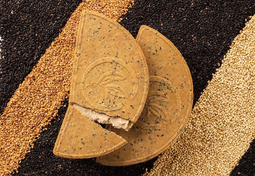 ほんのり黒糖風味の贅沢ごまゴーフレット『鎌倉ごま半月』のおいしさの秘密は、贅沢に使用したたっぷりのごま。とびっきり香ばしく焼き上げたザクザクのゴーフレットに「まろやか白ごま」「ほろにが黒ごま」「かおる金ごま」 3種のごまをどっさりとミックス!生地の間には、ほんのり甘い黒糖クリームをサンドしています。ごまのうまみがたっぷり詰まった生地をカリッとかじればパリンッと割れて、フワッと黒糖の甘みが広がるこだわりのゴーフレットです。