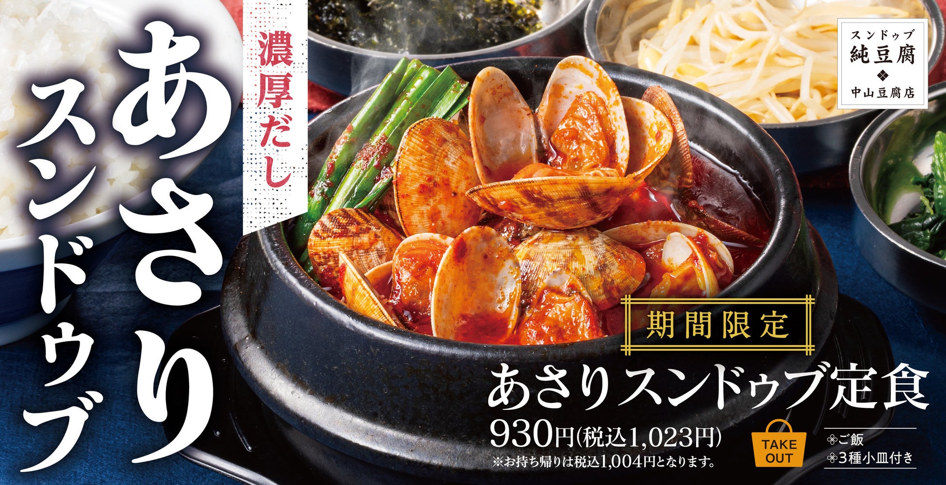 手軽に熱々のスンドゥブが食べたい時の選択肢として、おひとり様でも気軽にご利用いただけるスンドゥブ定食専門店「スンドゥブ 中山豆腐店」にて、期間限定メニュー「あさりスンドゥブ定食」を2025年1月23日(木)より販売を開始いたします。