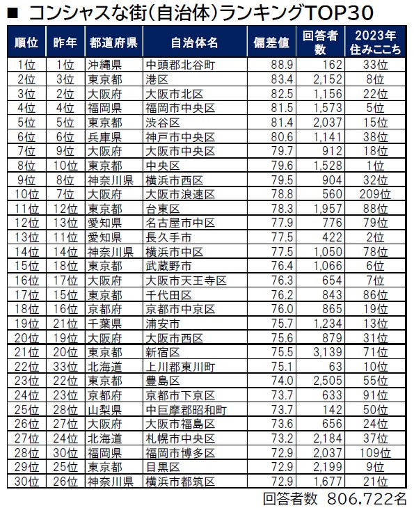 いい部屋ネット「コンシャスな街ランキング2023<全国版>」(街の住みここちランキング特別集計)発表