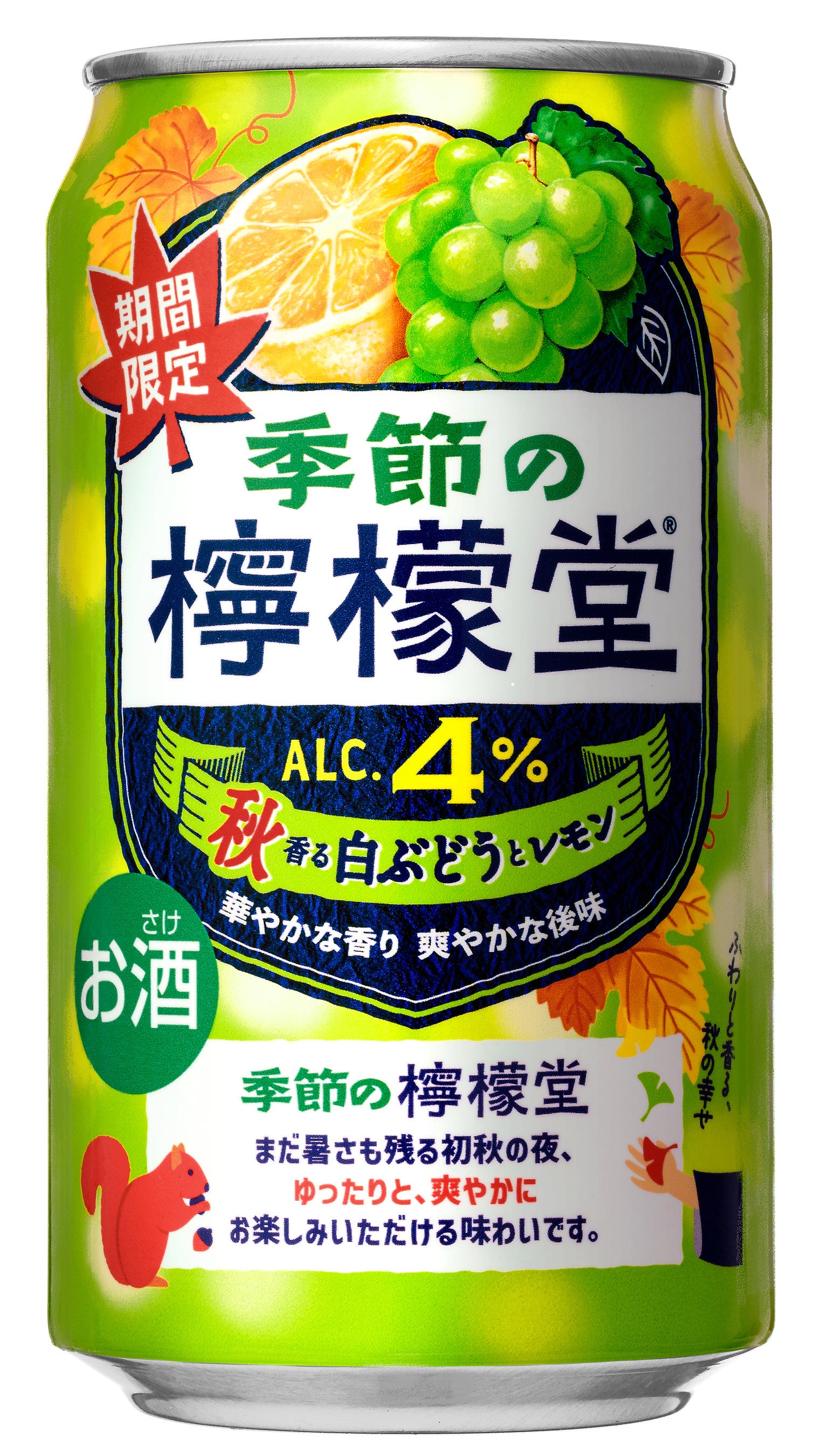 今年の第三弾は、「季節の檸檬堂 秋香る白ぶどうとレモン」。秋らしい果実として人気の高い“白ぶどう”の華やかな香りにレモンの爽やかさをプラスした、秋限定の一本です。