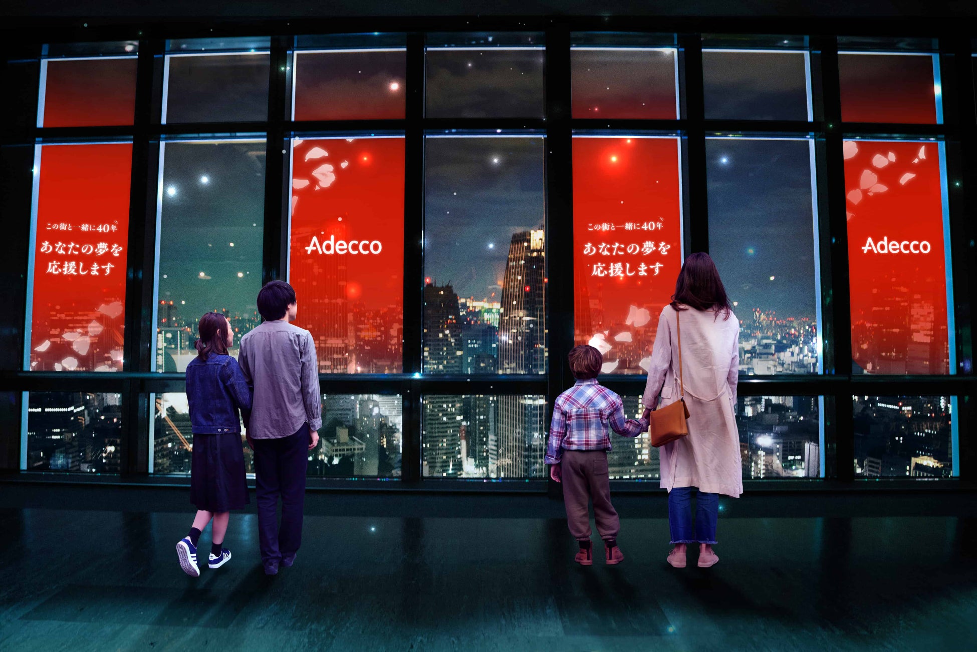 冬のイルミネーションシーズンに先駆け、幻想的な冬景色をいち早く楽しめるこのイベントでは、タワーの展望台から見える東京の夜景に雪が静かに舞い降りる映像が展開され、「あなたの夢を応援します」というメッセージをテーマに、未来への希望と夢を感じられる世界観をお届けします。長年、東京で働く人々を見守り続けてきた東京タワーを舞台に、アデコのステークホルダーの皆様へ日頃の感謝と、そして東京タワーを訪れる観光客や働く方々への応援の気持ちが込められています。