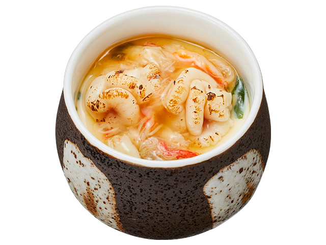 店内で蒸し上げたなめらかな茶碗蒸しに、炙り白子とずわい蟹の贅沢なあんをたっぷり合わせました。出汁が効いた奥深い味わいで、冬の味覚を存分に堪能できる一品です!