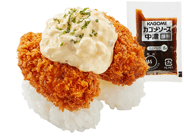 『広島県産 牡蠣フライにぎり~たまごたっぷりタルタル&ソース~』二貫290円(税込)~