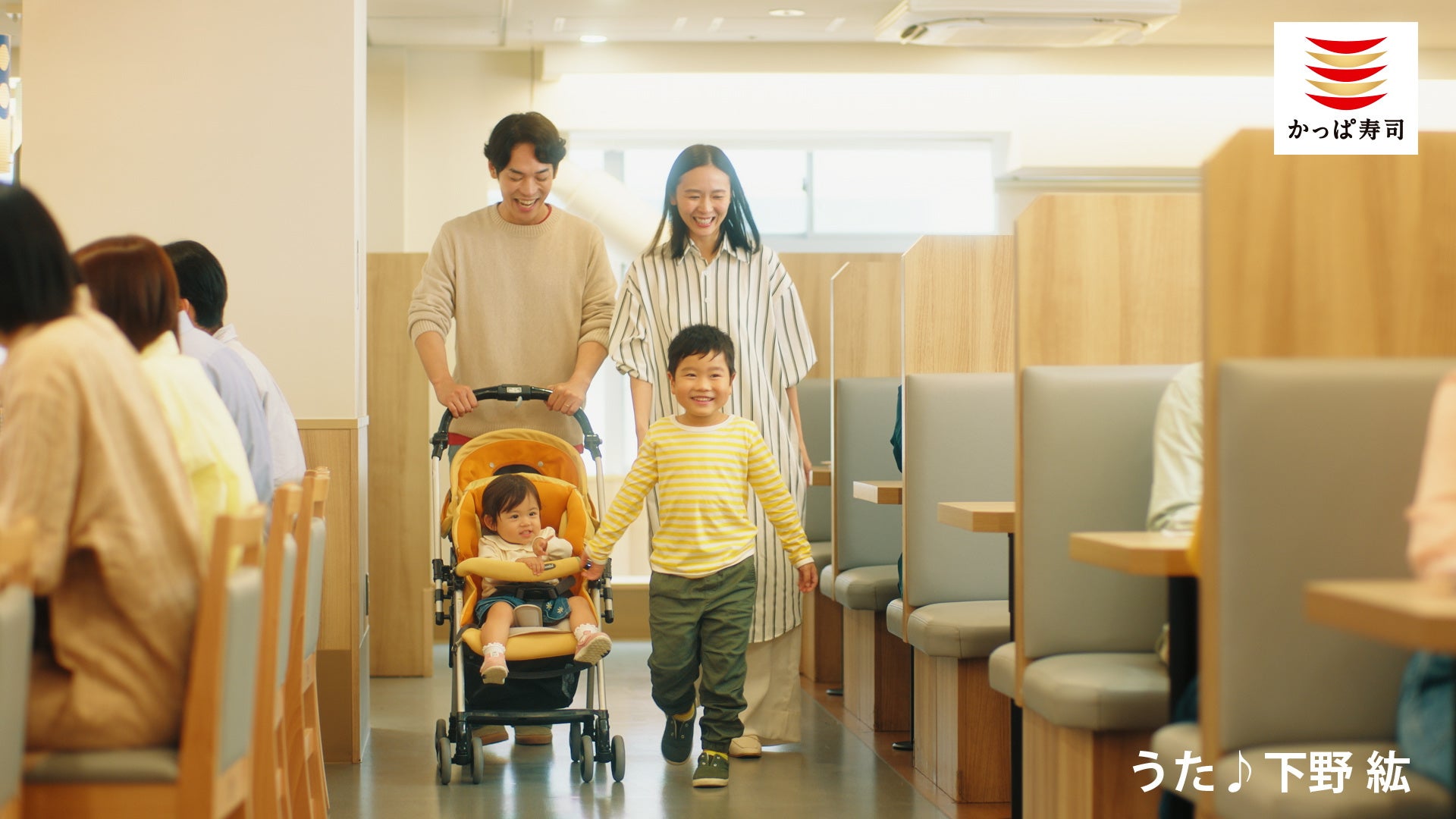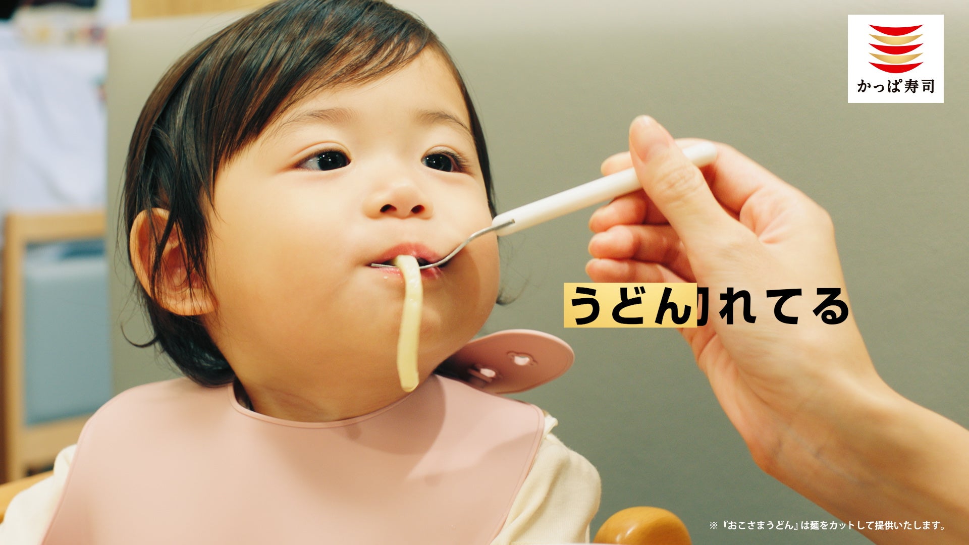 ベビーカーも持ち込めてご家族でも「ゆったりお食事いただける席」、おこさまでも食べやすいよう「短く切ったうどんのx提供」など、おこさま連れのお客様にも安心して気軽にご来店いただけるようなお店のつくりを、懐かしいCMソングとともにご紹介しております