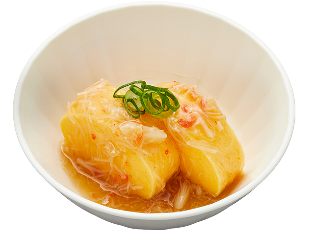 ふんわり温かいだし巻き玉子に、ずわい蟹の旨みが詰まった贅沢なあんを合わせました。 蟹あんをまとった上品な味わいを、お楽しみください。