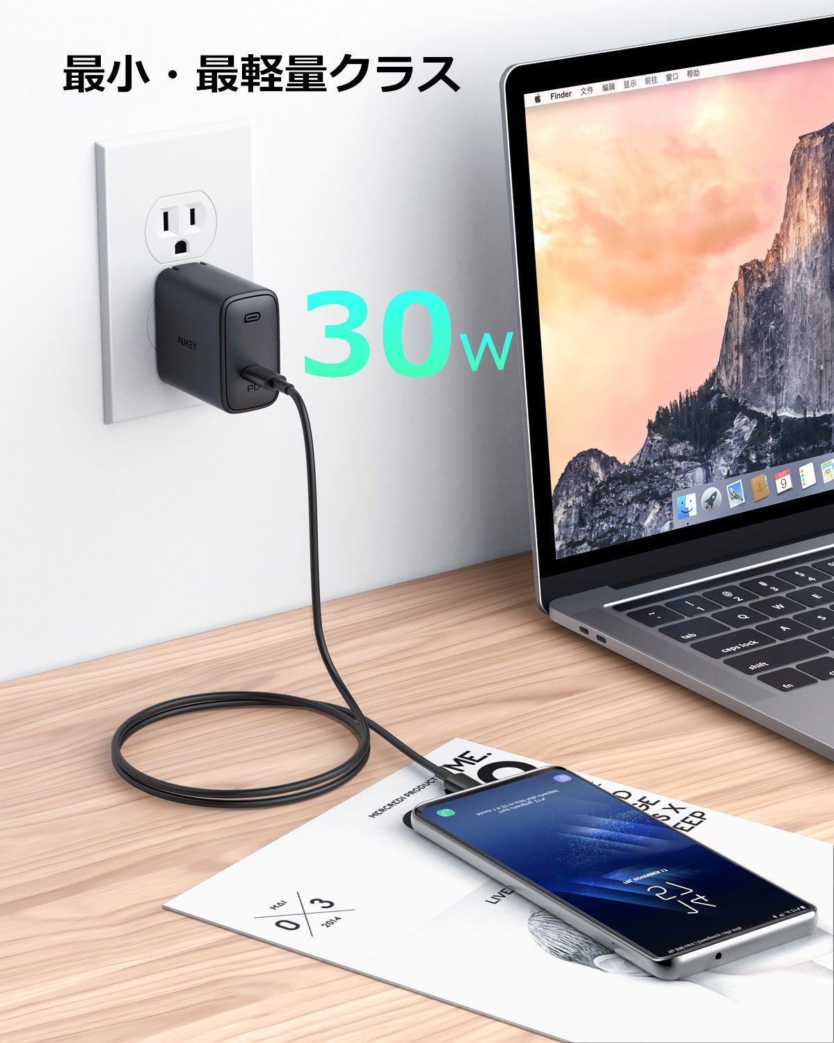 小型で軽量が正義!AUKEY 30W USB-C急速充電器 PA-F2が期間限定半額オフ!MacBook Airにもフルスピード充電