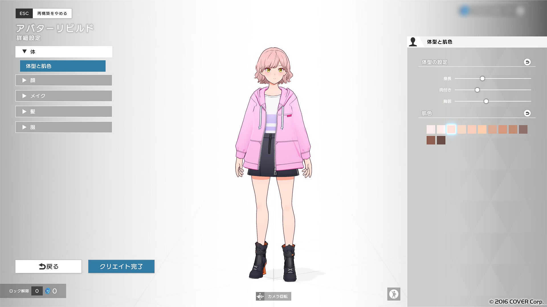 アバターリビルド画面では、性別を含めた全ての変更が可能です。