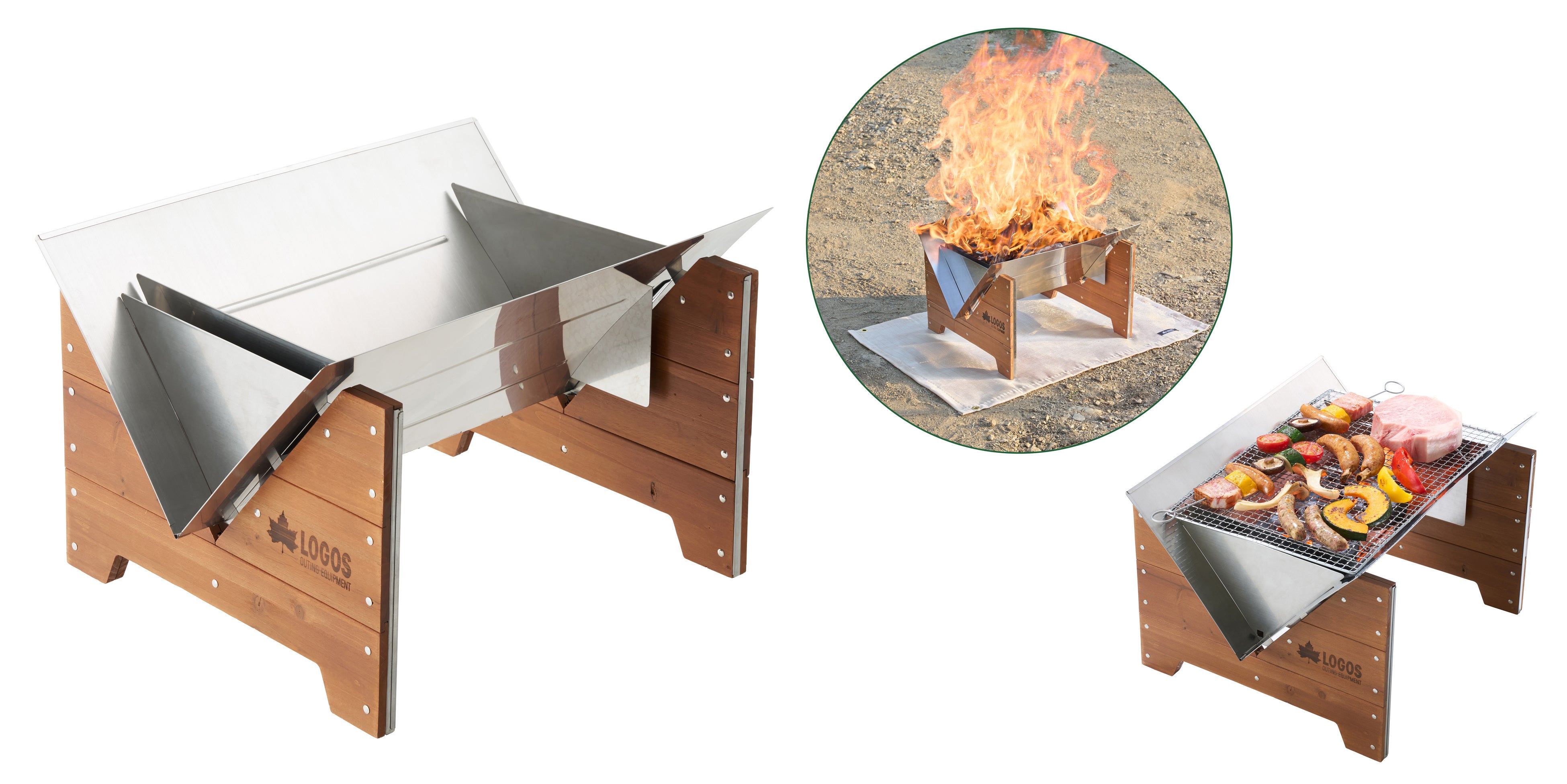 ステンレスとウッドが調和したデザインで、たき火もBBQも楽しめる2WAYたき火台「LOGOS ウッディファイヤーベース」を、さまざまなアウトドアシーンでぜひご活用ください。