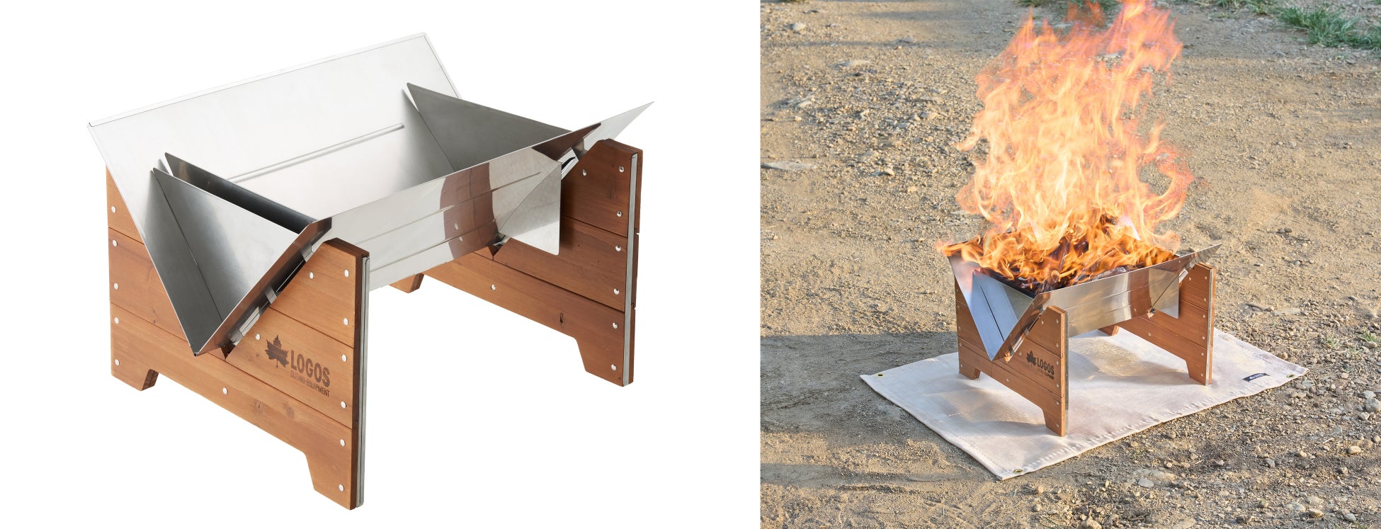 ステンレスとウッドが融合!ガーデンファニチャーとの相性抜群なたき火台「LOGOS ウッディファイヤーベース」新発売!