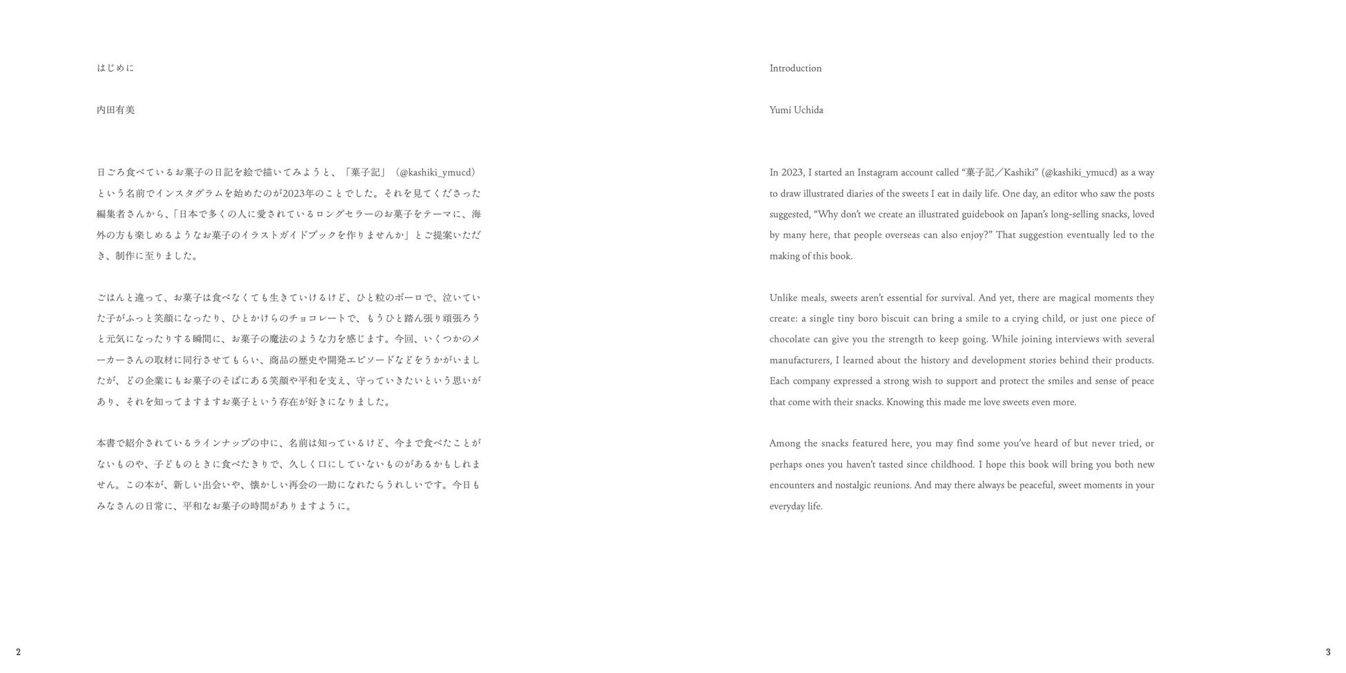 日ごろ食べているお菓子の日記を絵で描いてみようと、「菓子記」(@kashiki_ymucd)という名前でインスタグラムを始めたのが2023年のことでした。それを見てくださった編集者さんから、「日本で多くの人に愛されているロングセラーのお菓子をテーマに、海外の方も楽しめるようなお菓子のイラストガイドブックを作りませんか」とご提案いただき、制作に至りました。