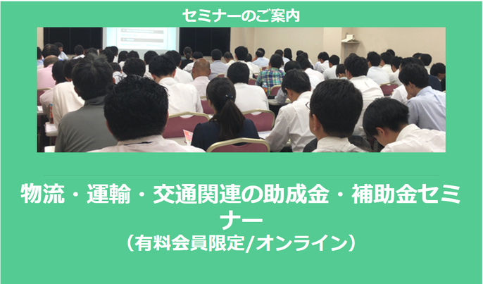物流・運輸・交通関連の助成金・補助金セミナー(オンライン/有料会員限定)【助成金なう】