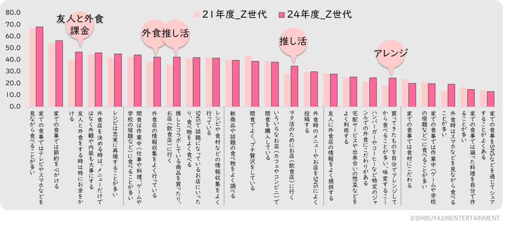 株式会社SHIBUYA109エンタテイメント(本社:東京都渋谷区、代表取締役社長:石川 あゆみ)が運営するIMADA KITCHENと、Vポイントのライフスタイルデータをもとにマーケティング・ソリューション事業を展開するCCCMKホールディングス株式会社(本社:東京都渋谷区、代表取締役社長兼CEO:髙橋 誉則)は、18~24歳に対する定性調査およびWEB調査によりZ世代の食に関する意識調査を実施し、2021年に実施した同様の調査と当調査を比較分析しました。