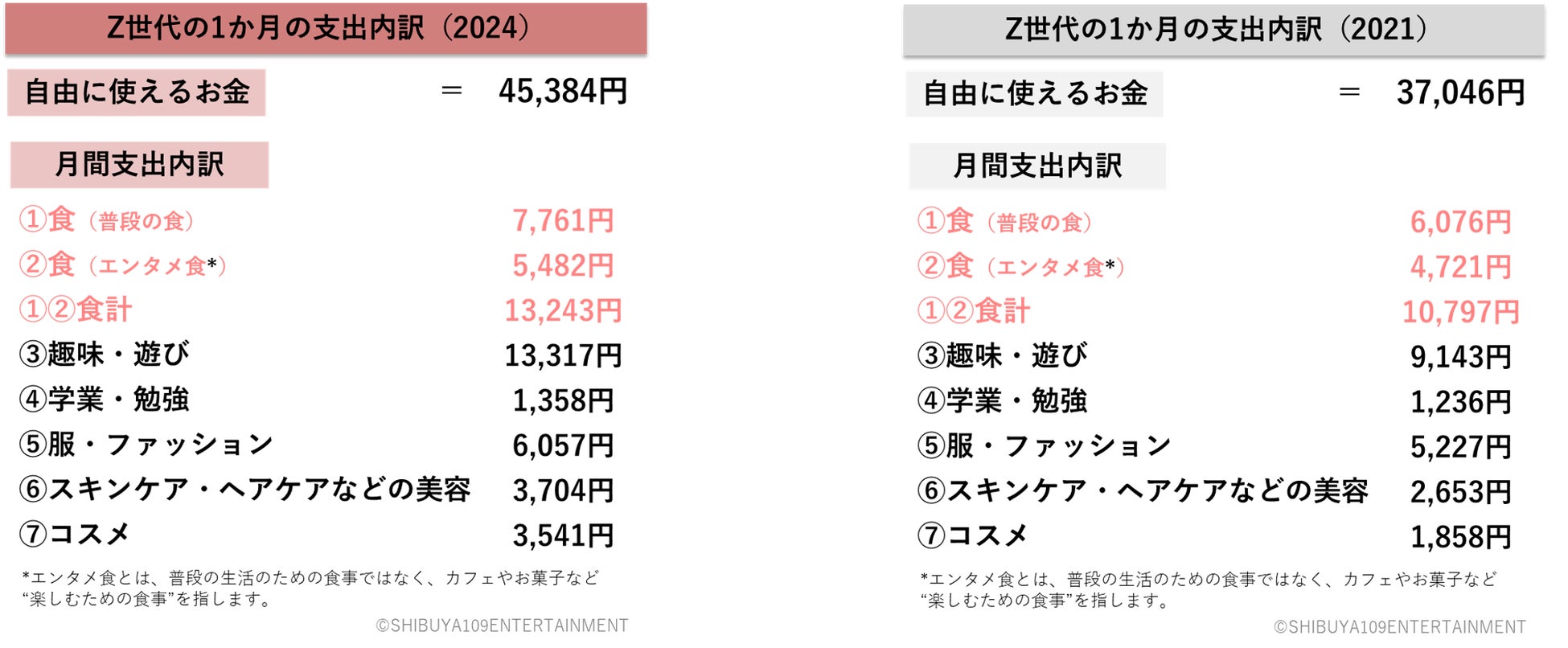 1.Z世代が支出する1か月の食費は2021年比で約2割増加。支出の約3割を食に費やす。