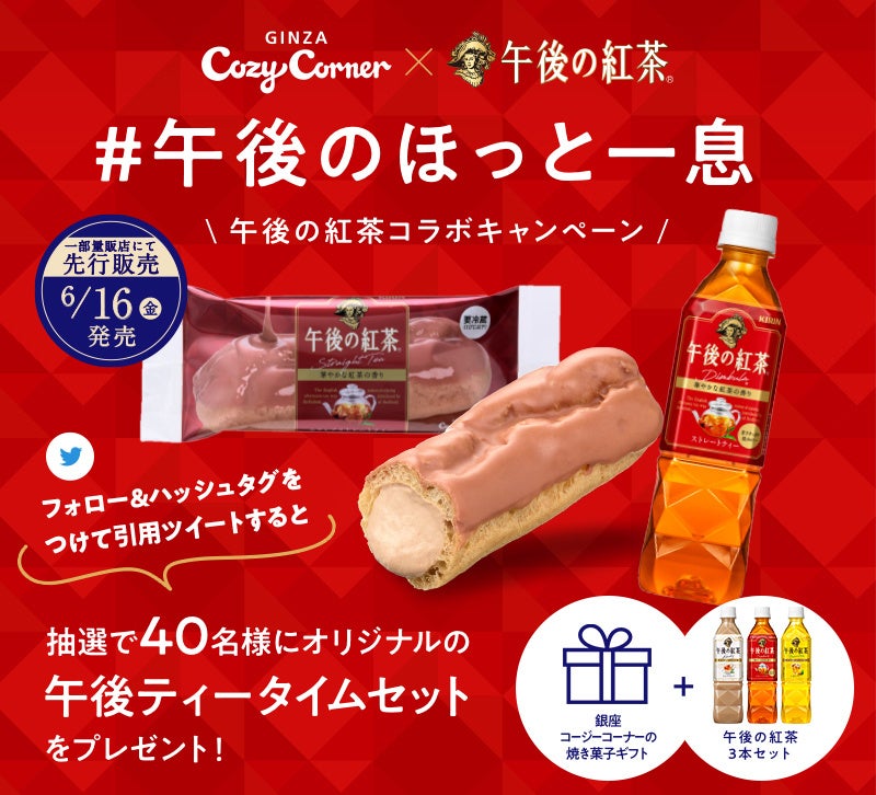 銀座コージーコーナー×「キリン 午後の紅茶」コラボ記念。「オリジナル午後ティータイムセット」が当たるTwitterキャンペーンを開催!