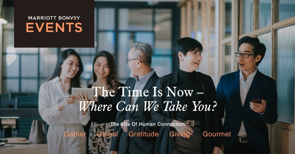 マリオット・インターナショナル(本社:米国 メリーランド州、最高経営責任者:アンソニー・カプアーノ、社長:ステファニー・リナーツ)は、アジア太平洋地域のビジネス回復を支援するために、人間的なつながりの温かさを人々に思い出させ、対面による会合の再開を呼び掛けることを目的とするキャンペーン「5Gs of Human Connection」を立ち上げました。5GはGather(集まる)、Global(グローバル)、Gratitude(感謝)、Giving(与える)、Gourmet(グルメ)を表し、これらは人々が有意義で記憶に残る形で相互につながる瞬間です。5つの柱のいずれも、働く人々の発展する要件を満たし、会合の企画者が出席者のために印象的なエクスペリエンスを構築できるよう支援するように設計されています。