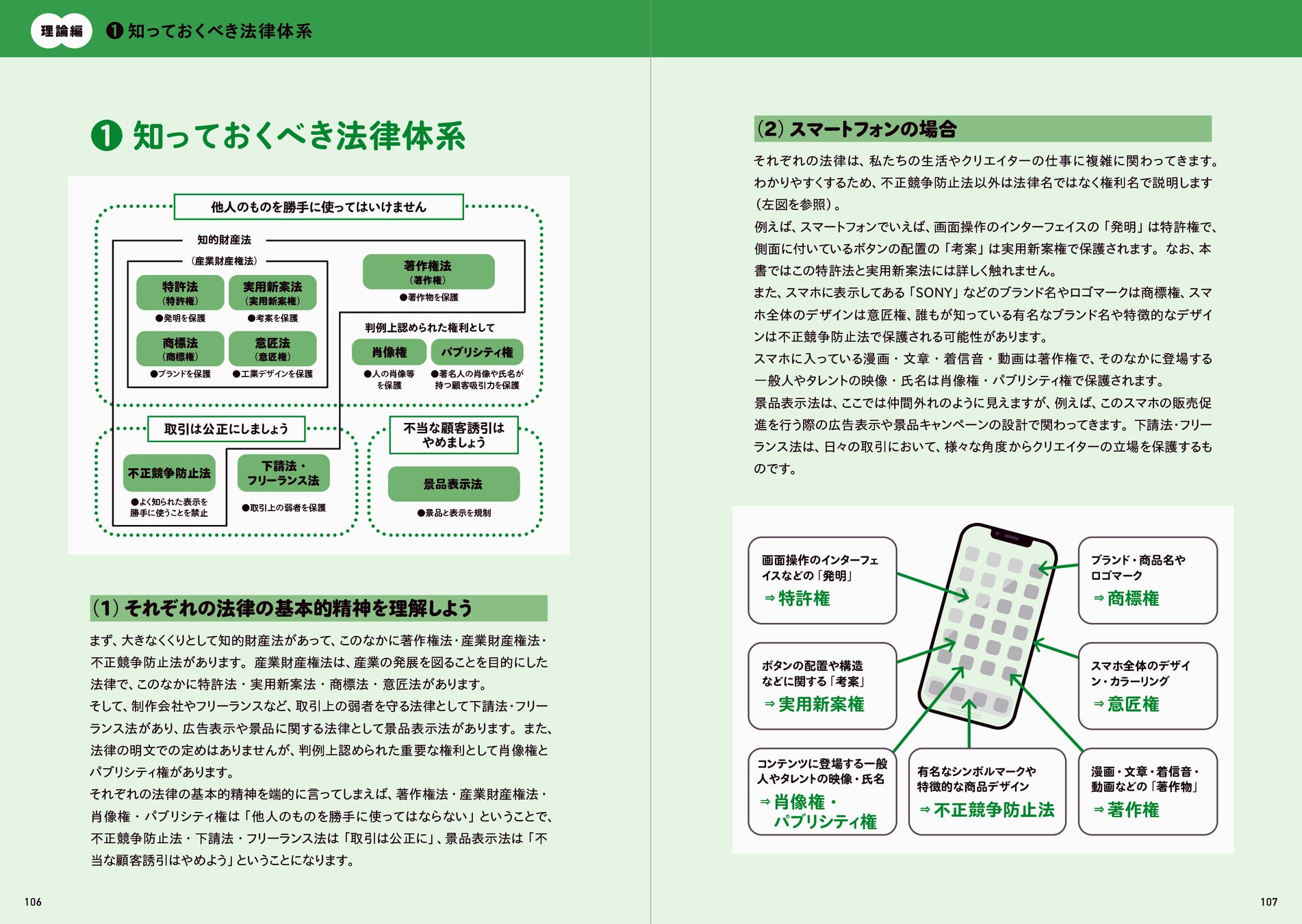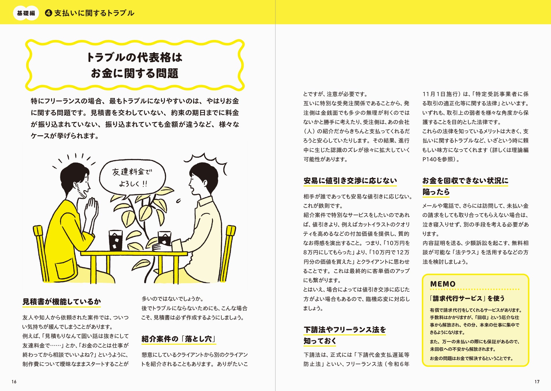 クリエイターがトラブルに直面した際の対処法や予防策を紹介します。具体的なトラブルをタイプ別にまとめたり、架空の業務を設定し、各プロセスに潜むトラブルをQ&Aで解説したりと、法律に苦手意識を持つクリエイターにもわかりやすい入門書です。契約書の雛形付き。
