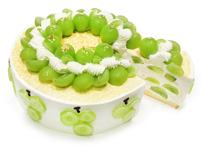 9月のミルクレープは、日本一を誇るぶどうの生産地で糖度や食味にこだわり、輝く翡翠のように育まれたシャインマスカット「ふじやまの彩(いろどり)」を使用したミルクレープです。現在開催中の「シャインマスカットフェア」のケーキとともに楽しめます。