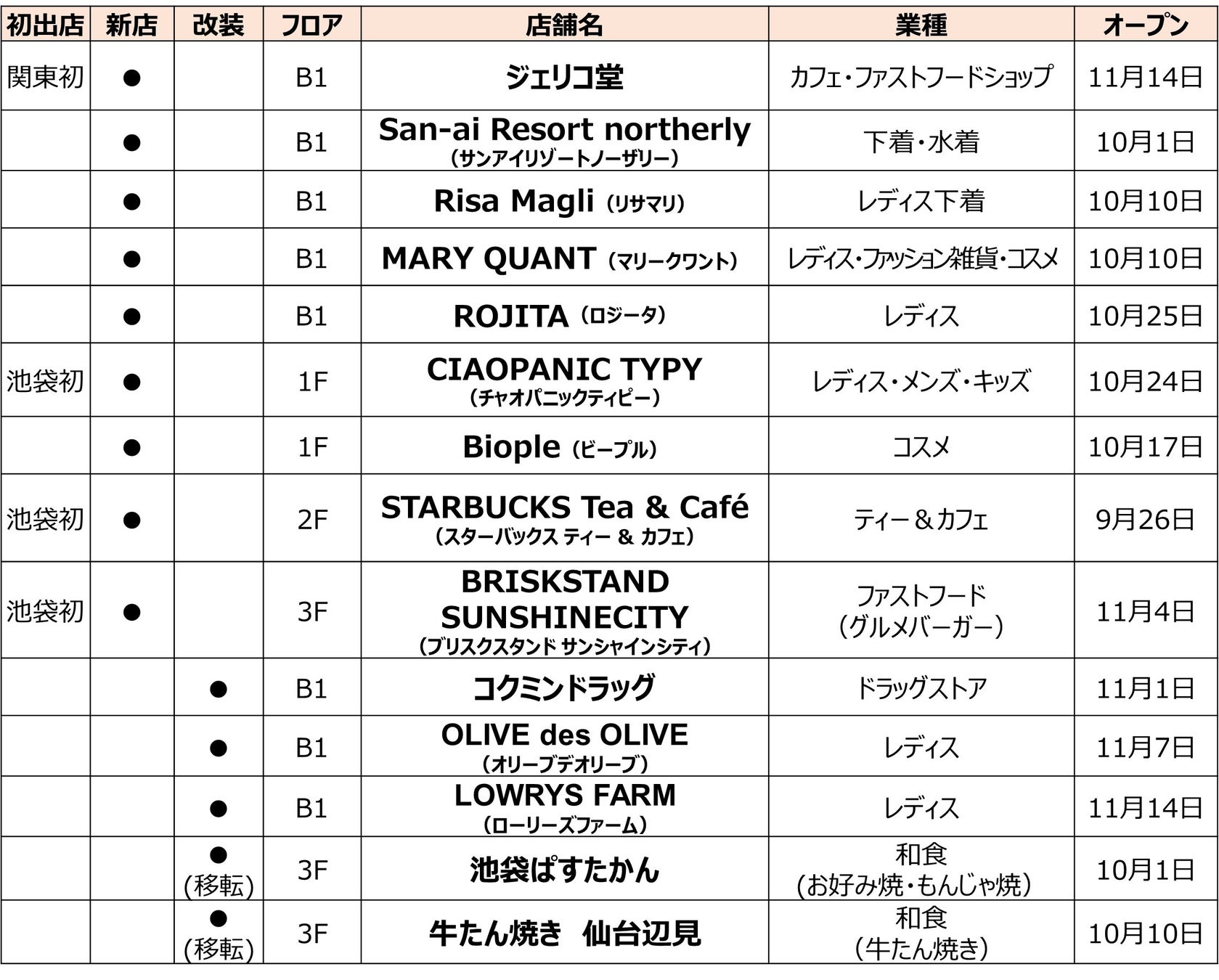 サンシャインシティ(東京・池袋)内の専門店街アルパでは、今秋から冬にかけ、約2,200㎡・20店舗超を刷新します。まずは第一弾として11月までに14店舗が順次オープン。