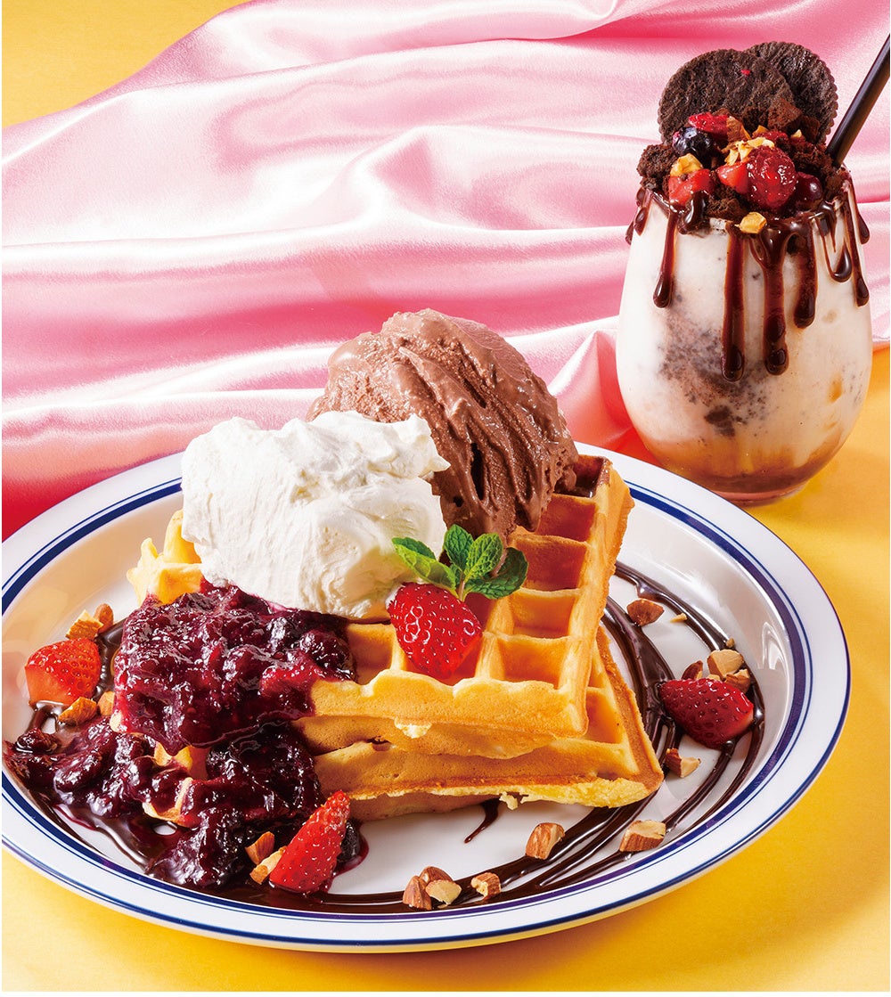 さっくりふんわり食感のあったかワッフルと冷たいチョコレートアイスのコントラストを楽しむ「チョコレートベリーワッフル」や、ノンアルコールでもご提供可能な、砕いたチョコクッキーとバニラシェイクのフローズンカクテル「クッキー&クリームのチョコレートスラッシー」をご用意いたします。