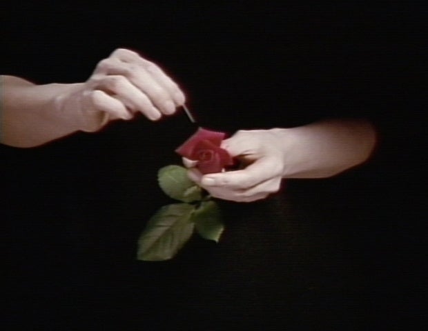 1973年の夏、帰国した際にビデオ上映会へ出品を打診され、初めてのビデオ作品を制作。白黒オープンリール機材を用いて、トイレに浮かぶ使用済みタンポンを撮影した。初めて作品上映の機会を得た出光は、以後日米を往復し制作を続けた。本作品は、映像作家・出光真子の評価を決定付けた初のビデオ作品(1973年)であり、本展のタイトルに用いられている。