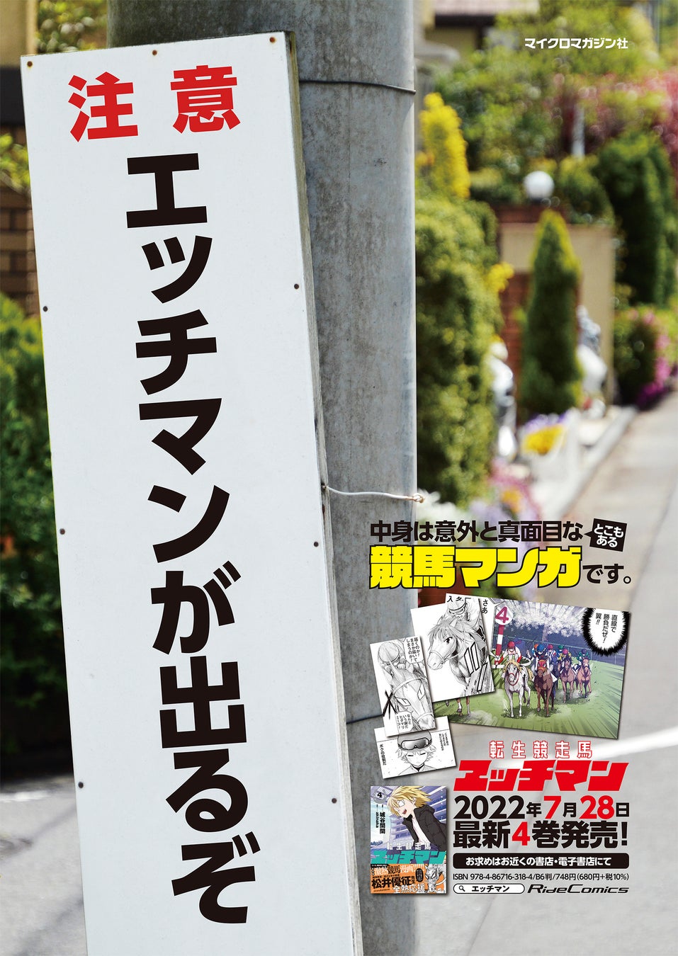 【エッチマンが出るぞ!】ライドコミックス『転生競走馬 エッチマン』ポスターが錦糸町駅&蒲田駅に登場!