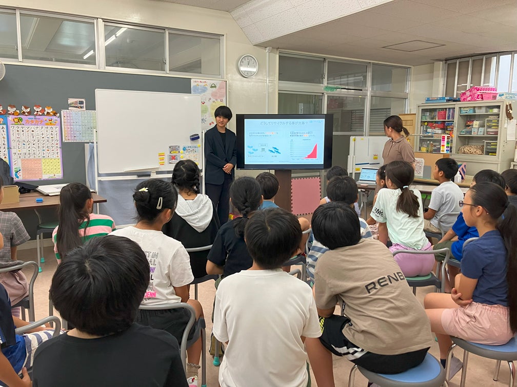 2025 年度はコクヨグループ社員による出張授業を約50校で実施します。子どもたちは、身近な文具であるノートを捨てずに「資源として循環させる」ことで、地球環境への影響をどう変えることができるのかを学ぶことができます。授業の後半では、学んだ事を活かして、他のクラスや学年を巻き込み環境への良いインパクトを大きくするための作戦を立てます。授業を通じて、大きな課題に対して友達や社会とつながりながら解決できることを体験してもらえるように工夫しています。