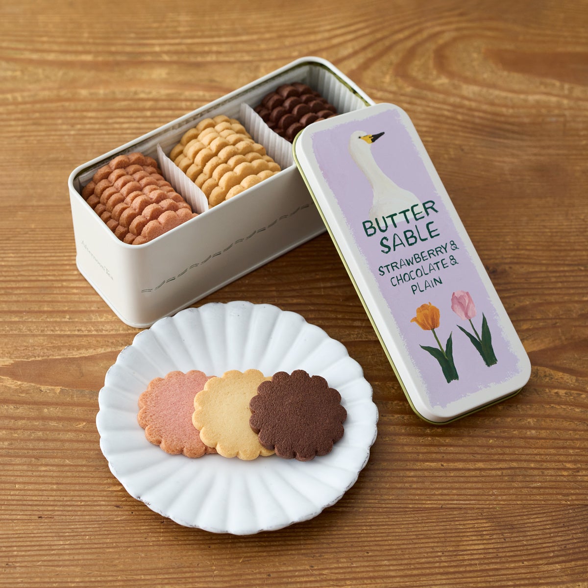 国産バターを使ったバターサブレ。苺、ショコラ、プレーンの3種を詰め合わせました。それぞれ素材の味をお楽しみください。