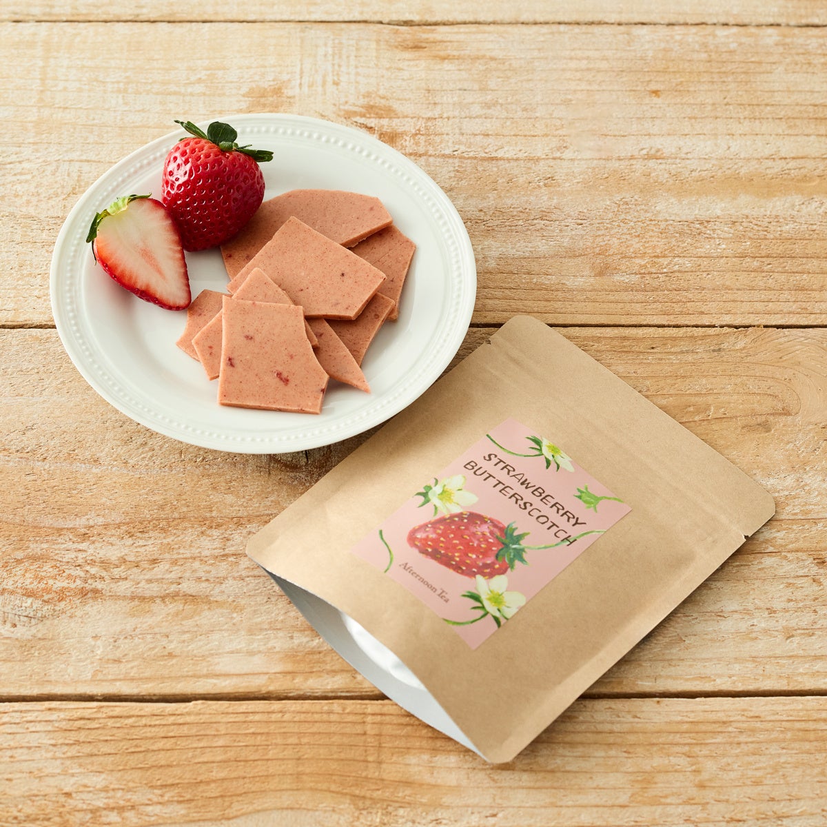 北海道産発酵バターと生クリームに、ストロベリーパウダーとストロベリーチップを合わせた、甘酸っぱい味わいのバタースコッチ。カリカリとした食感をお楽しみいただけます。