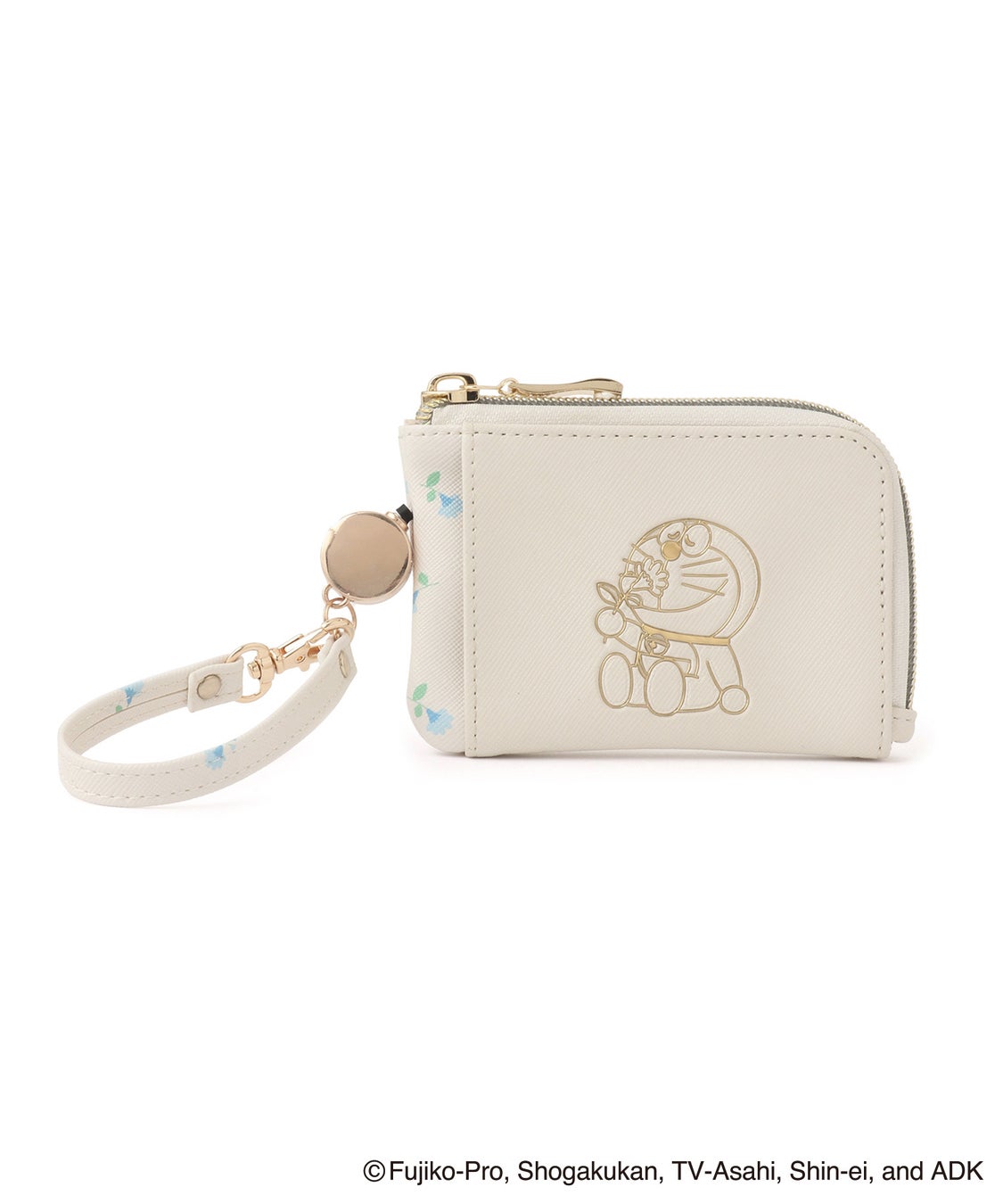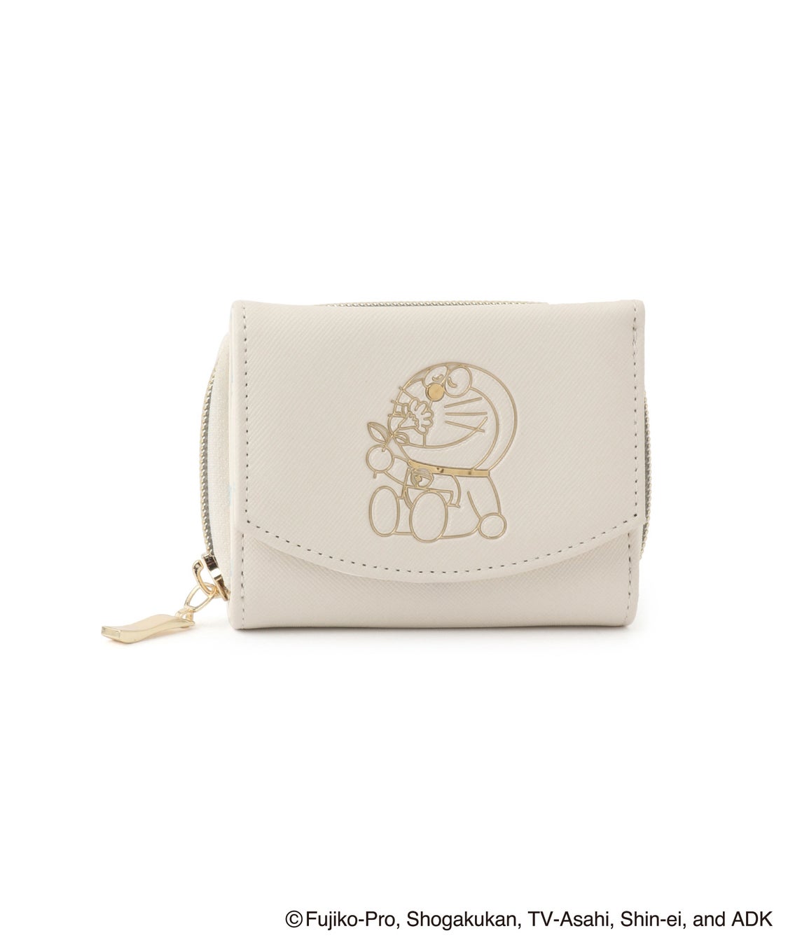 コンパクトに持ち運びができる3つ折り財布。外側はシンプルな無地のデザインで、フラップには「ドラえもん」のイラスト付き。内側は、「ドラえもん」を交えたキュートな小花プリントがあり、使う度に嬉しくなるアイテムです。