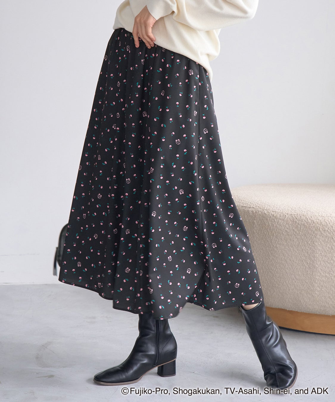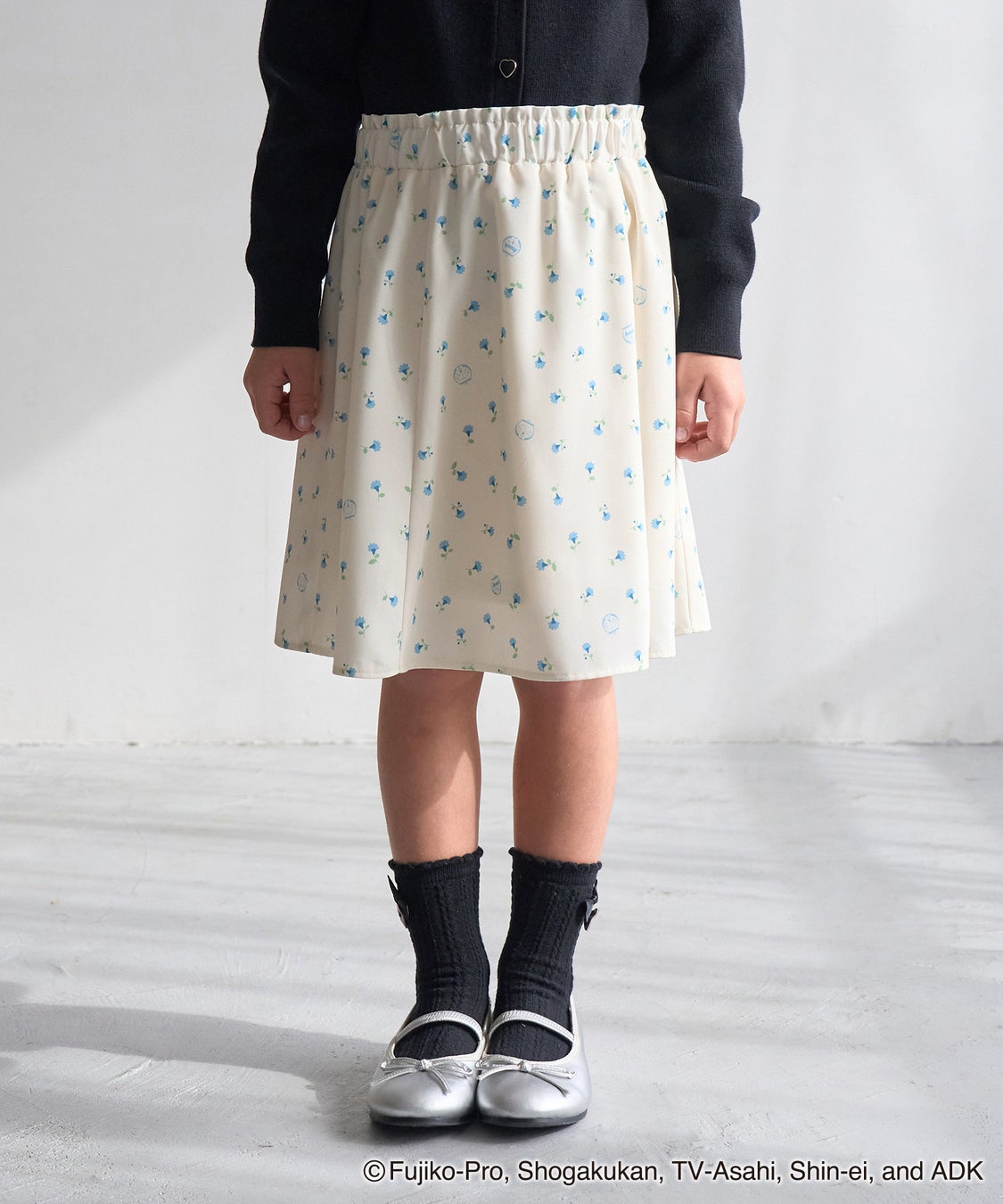 「ドラえもん」と「ドラミ」を交えた小花プリントがキュートなロングスカート。軽やかな素材感でオールシーズン活躍します。ウエストがギャザーで、ラクチンな穿き心地がポイントです。