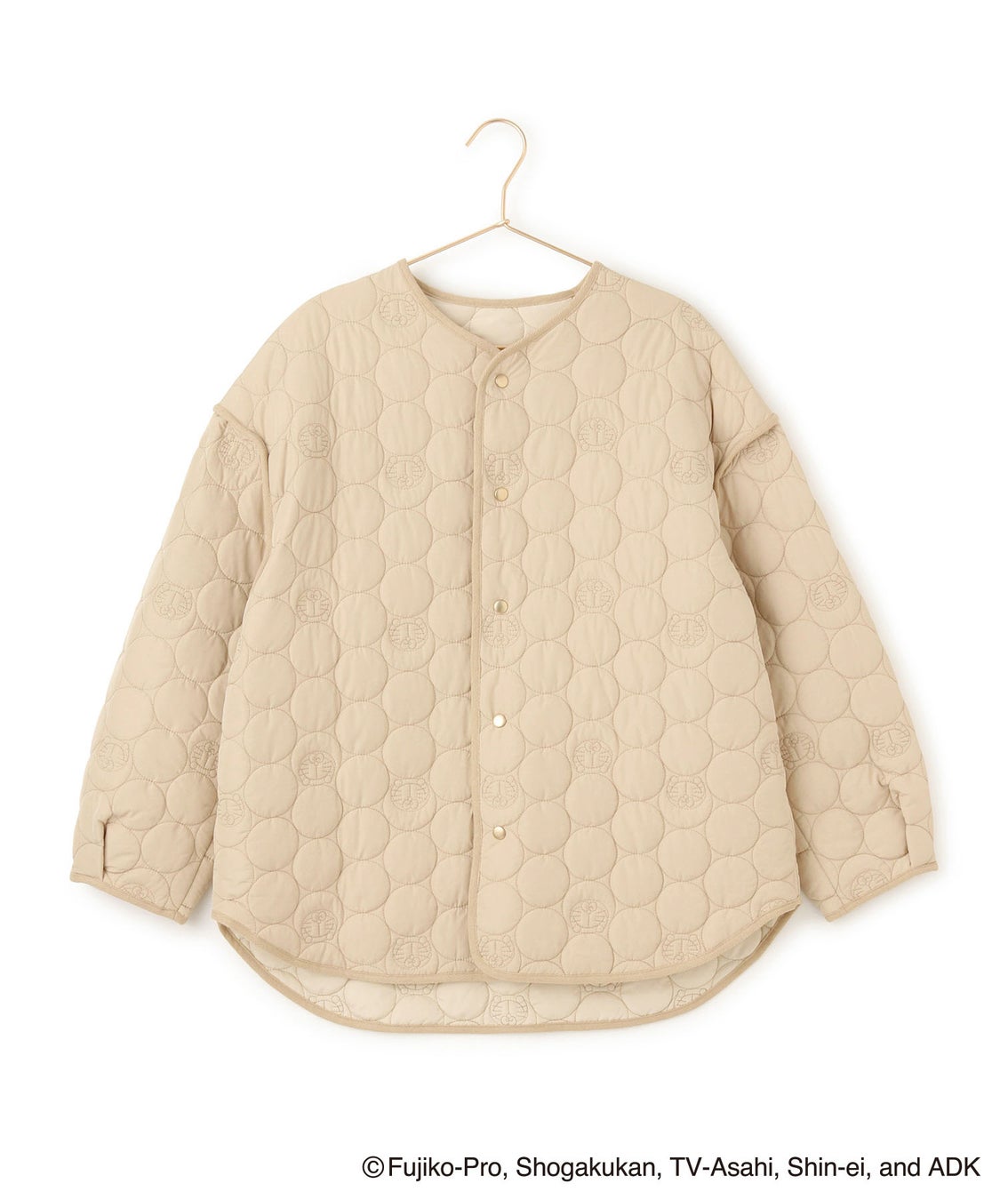 「ドラえもん」のキルト柄を施した中わたブルゾン。ドロップショルダーで丸みを持たせ、袖は切り替えを入れて立体感をプラスしたデザイン。中にニットを着てももたつかず、日常使いしやすいアイテムです。