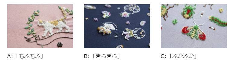 糸の種類は “オノマトペ”で表現され、その第一弾である「もふもふ」「きらきら」「ふかふか」の3種のキットに含まれるサンプラーを使用し、ステッチのコツをatsumiさんご本人より教えていただきます。