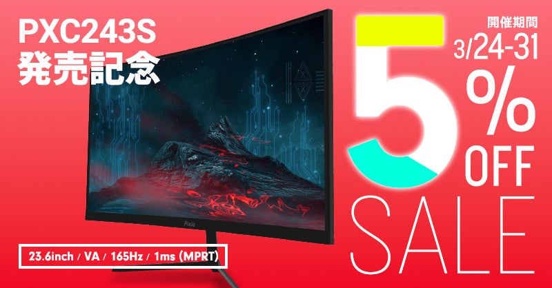 PXC243S発売を記念して、2023年3月24日(金)~3月31日(金)まで、同製品を定価より5%OFFで販売します。この機会にぜひPixio製品をご体験ください。