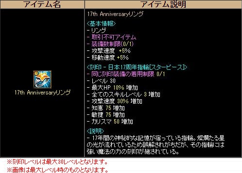 ■17周年を記念する「17th Anniversaryリング」をゲットして、刻印レベル30まで強化しよう!