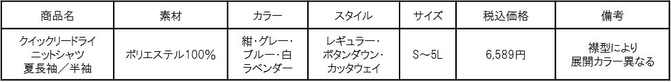 クイックリードライシャツ夏長袖/半袖 商品特長