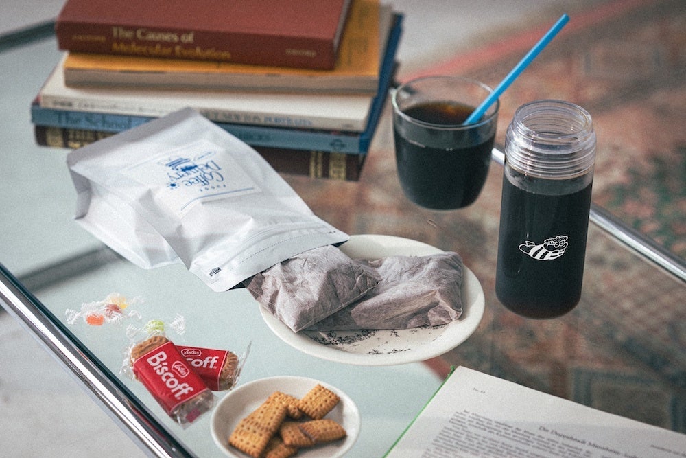 1袋に水出しコーヒーバッグ5個が入ったパックと《サーモマグ》別注のクリアボトル「オールデイ ライト」がセットに。水出しコーヒーバッグは1個あたりで750ml分のコーヒーが作れます。《サーモマグ》のクリアボトルにはホワイトカラーのファージーがプリントされていて、コーヒーを注ぐとぷかぷかとお目見えする仕様に。420mlと使いやすい容量ながら軽いのでお出かけにも持って行きたい!