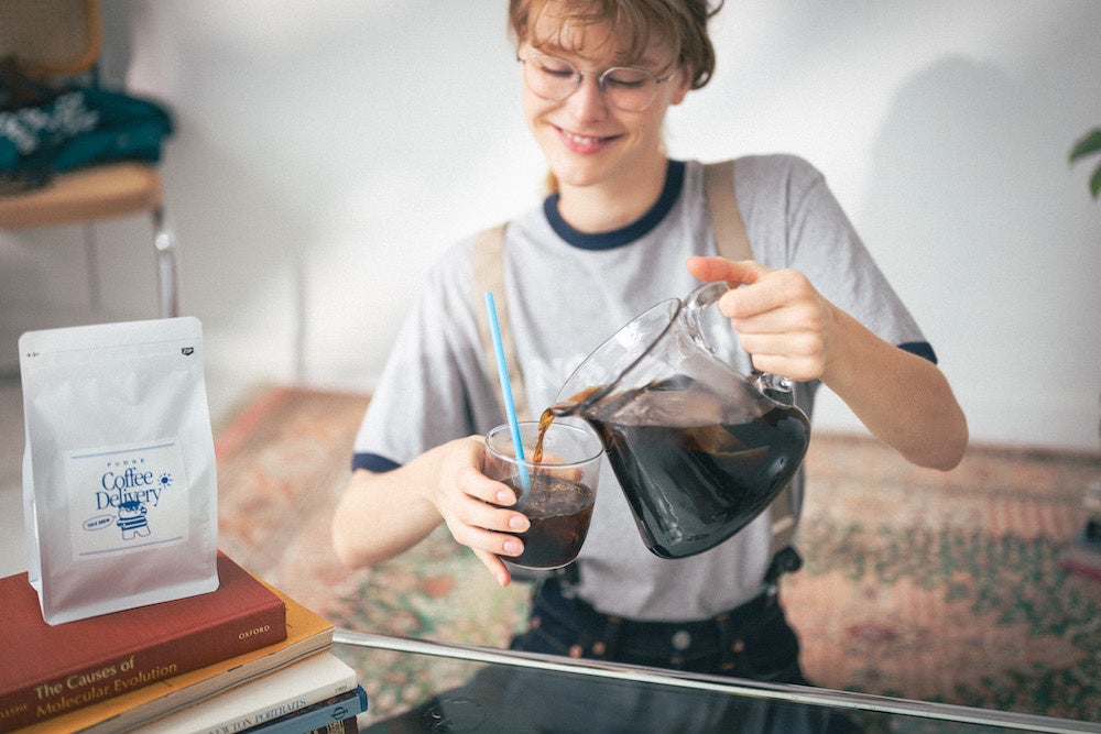 昨年実施した、第2回の「FUDGE コーヒー便」では、2023年は“本屋で働くパリジェンヌのコー ヒー時間”をテーマに朝・昼・夜、3種類のオリジナルブレンドを製作しました。その中でも好評だっ た朝・昼のコーヒーを、それぞれディップスタイルコーヒーバッグ、水出しコーヒーバッグに!