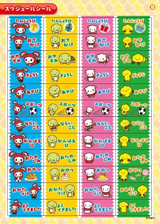 そんな、ぜんいちとマイッキー、おともだちのキャリーちゃんとバナナくんといった各キャラクターのシールはもちろん、なまえシールやメッセージシール、スケジュールシールなど、実用的なシールもたっぷりと、全部で360枚を収録。また、シールを貼るためのシートもついており、未就学から大人まで楽しみながら使っていただける、ファン待望の1冊です。
