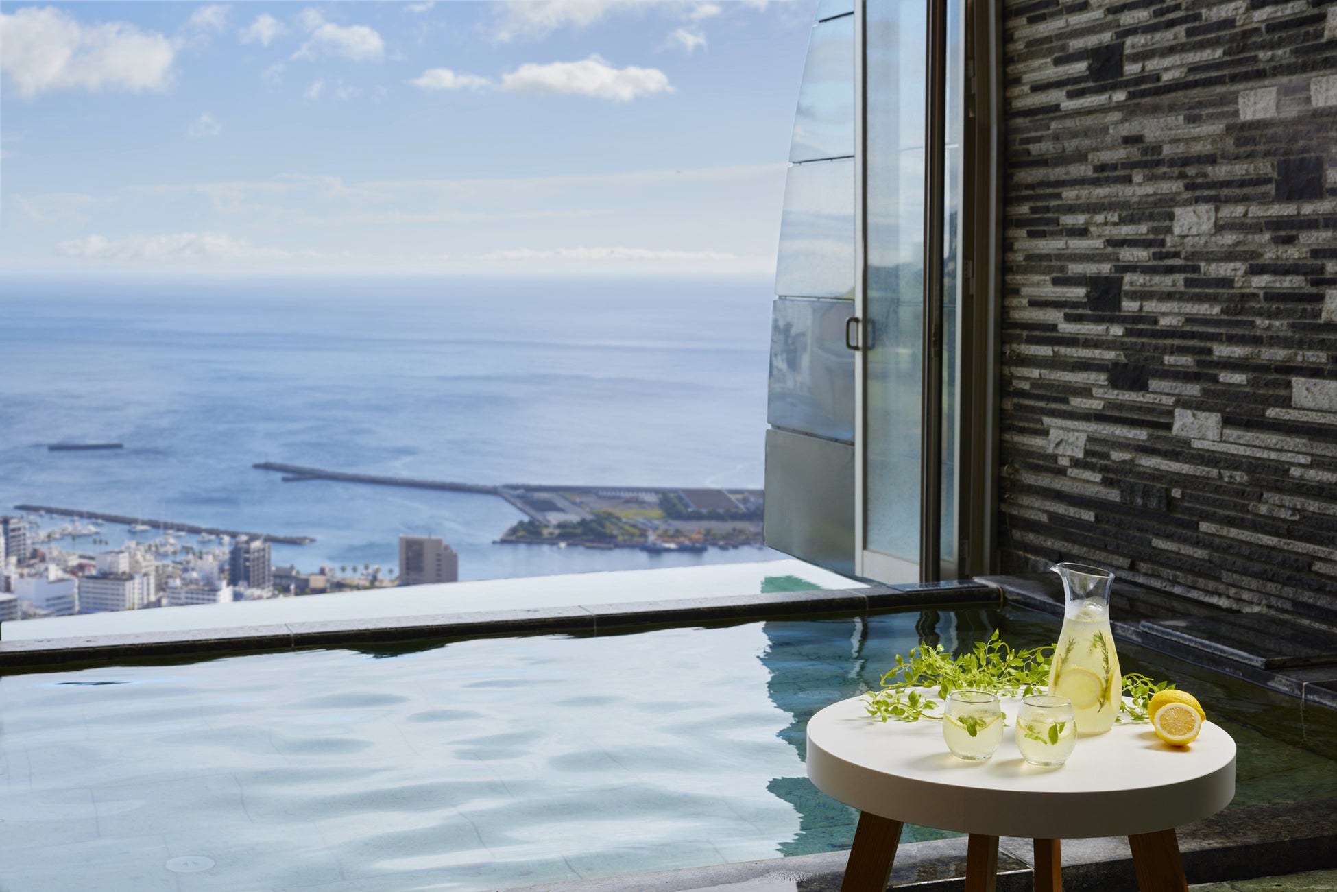 朝食後は、熱海の海と街を一望する大浴場「熱海温泉 ゆらゆら」を貸し切り、熱海の景色を独り占めしながら、身体を芯から温めます。温泉の泉質は塩化物泉のため、温まりやすく、湯冷めしにくいのが特徴です。入浴後には、伊豆にちなんだレモンを使用したオリジナルドリンクを飲み、内側からもリフレッシュします。貸し切りの大浴場に入って漁体験で使った身体を癒し、心身ともに満たされます。