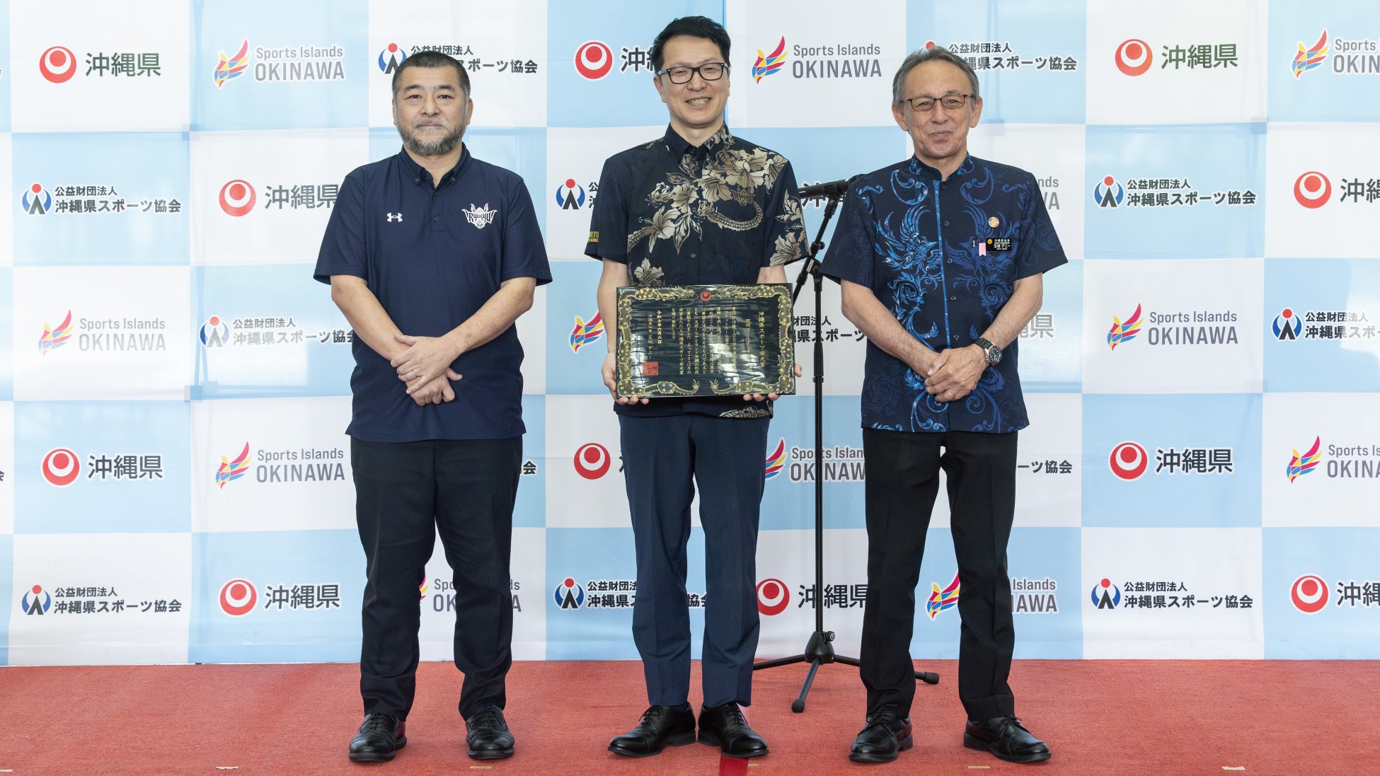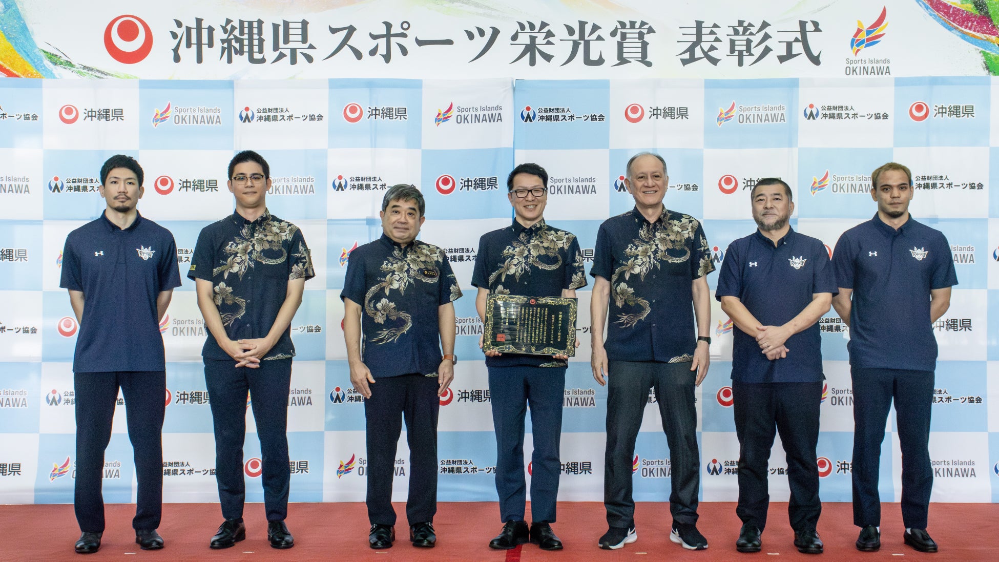 本賞は2024年に創設された表彰制度であり、沖縄県内におけるスポーツ振興と関心向上を目的に、国内外の競技大会においてめざましい成果を上げた個人または団体に贈られるものです。キングスは、第100回天皇杯優勝という節目の成果の他、これまで沖縄の皆さまと共に築いてきた歩みや、沖縄県内における青少年へのバスケットボール教室や地域との交流活動など、日々の積み重ねにも光を当てていただき、栄えある初の受賞団体に選ばれました。