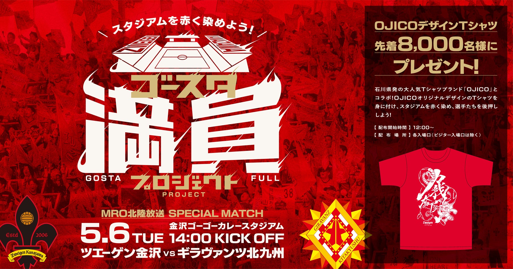 目指せ、満員!ツエーゲン金沢「満員プロジェクト」は5月6日(火祝)に決定!