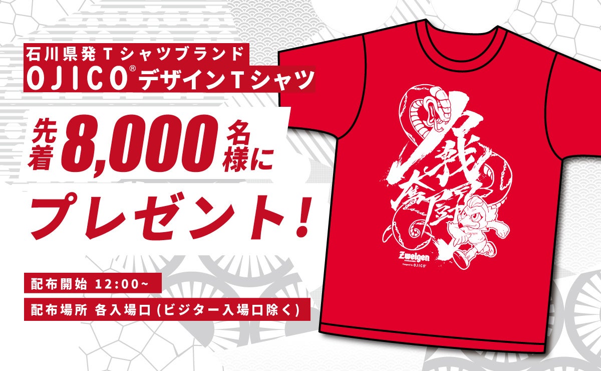 当日は、石川県発のTシャツブランド「OJICO(オジコ)」デザインのTシャツを先着8,000名様にプレゼントするなどイベントも満載です。
