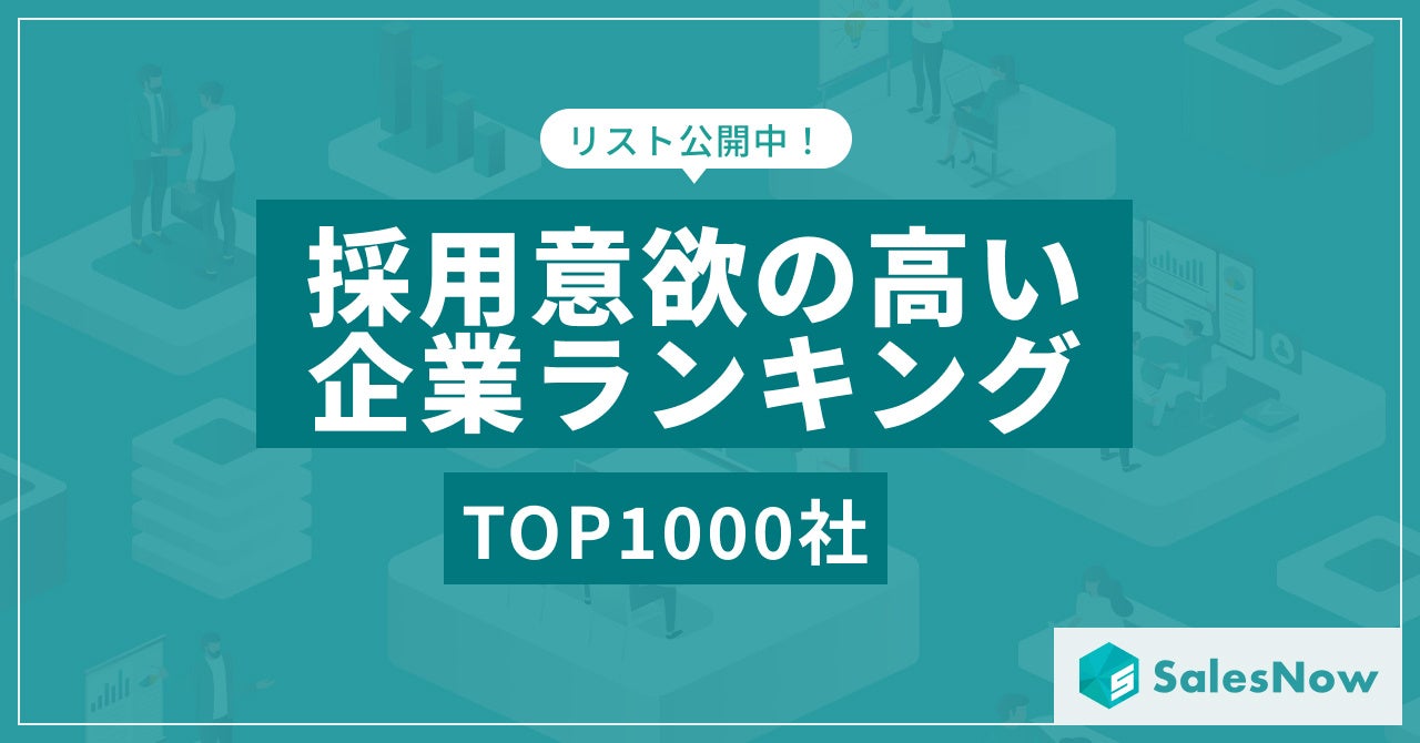 「誰もが活躍できる仕組みをつくる。」をミッションに掲げ、セールスチームの武器となるデータベース「SalesNow」を展開する株式会社SalesNow(本社:東京都渋谷区、代表取締役:村岡功規、以下「SalesNow」)は、国内550万社の企業情報を完全網羅した日本最大級のデータベース「SalesNow DB」より、採用意欲の高い企業ランキングTOP1,000社をお知らせします。