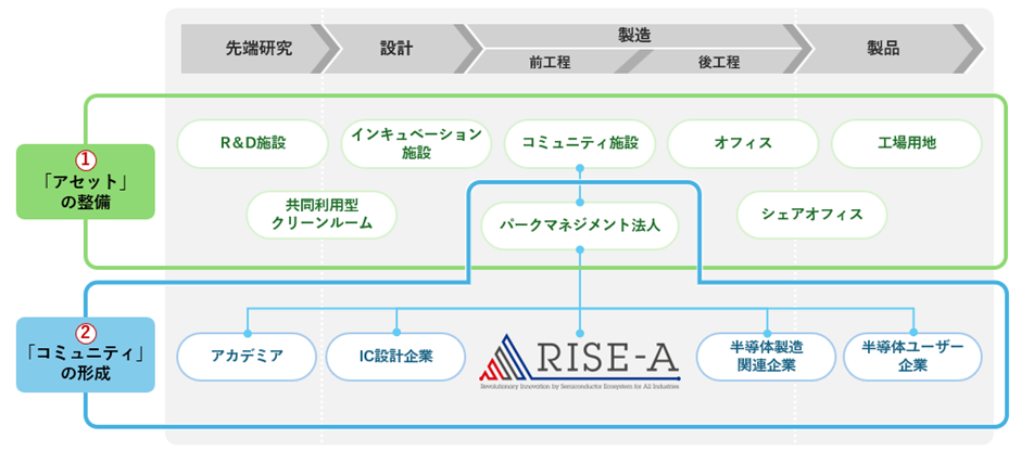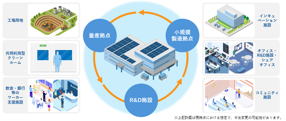 ①R&D施設、インキュベーション施設、オフィス・シェアオフィス、工場用地等、半導体産業に必要な「アセット」を整備