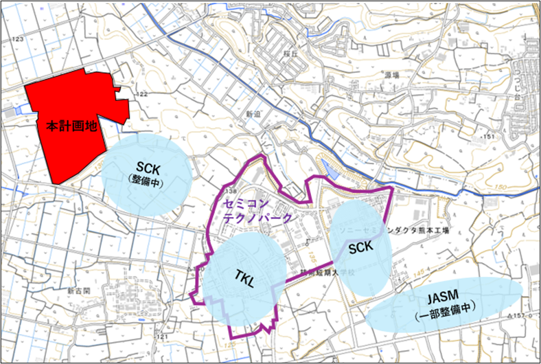 本プロジェクト予定地は、Japan Advanced Semiconductor Manufacturing株式会社(以下、「JASM」)、東京エレクトロン九州株式会社(以下、「TKL」)、ソニーセミコンダクタマニュファクチャリング株式会社(以下、「SCK」)をはじめとする半導体関連企業が立地する、国内有数の産業集積エリアに近接しています。