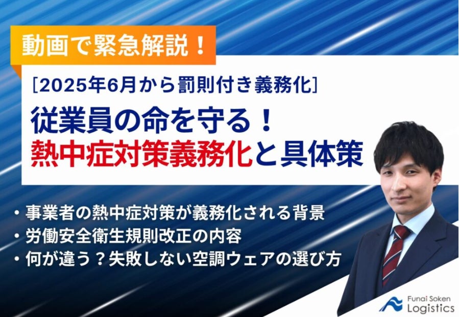 日本最大級の物流コンサルティングファーム 船井総研ロジ株式会社(本社:東京都中央区、代表:橋本直行、以下「船井総研ロジ」)は、2025年6月に施行した熱中症対策の義務化と有効な対策について、くわしく解説した動画を期間限定で無料公開しました。