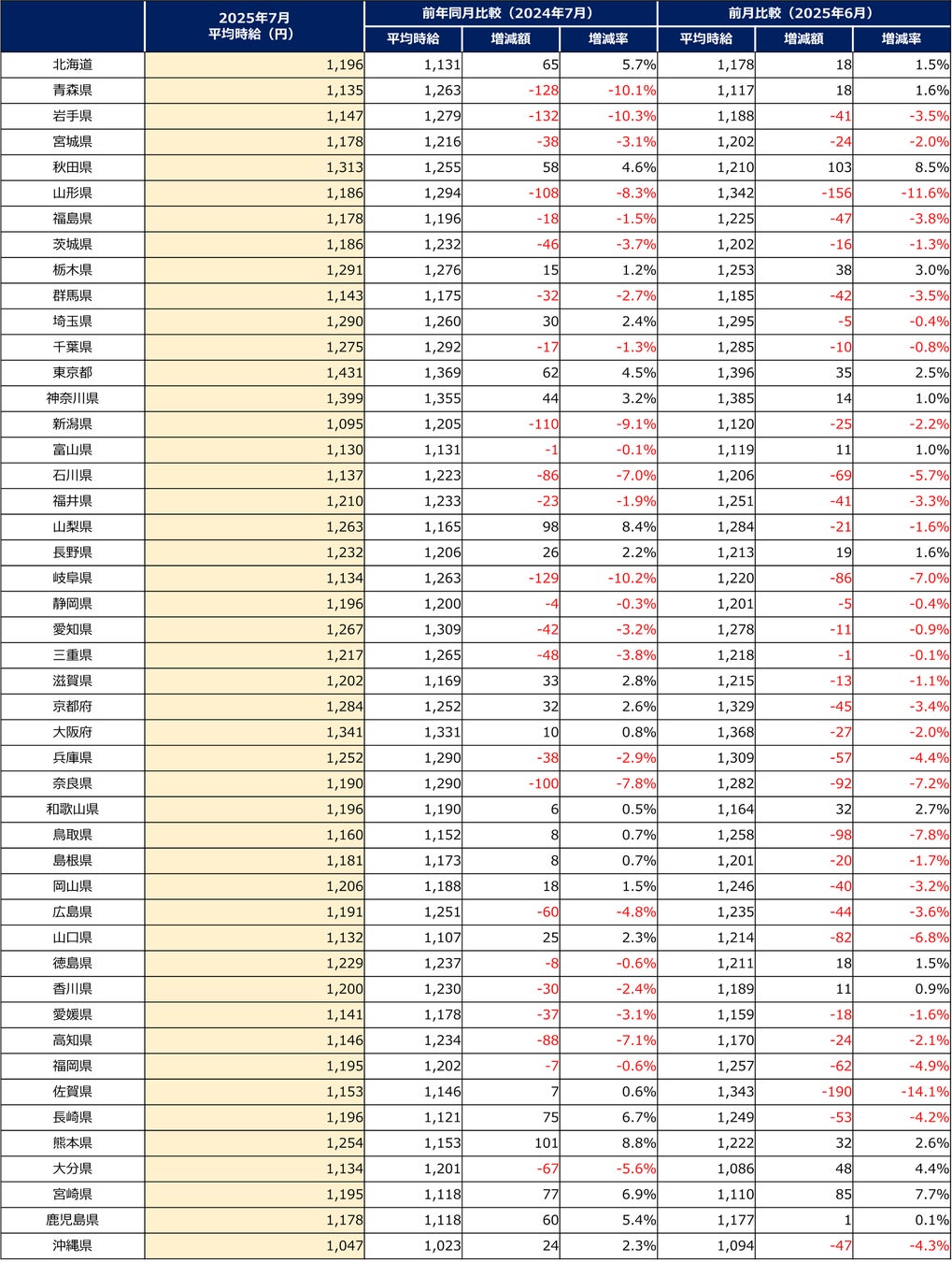 エン・ジャパン株式会社(本社:東京都新宿区、代表取締役会長兼社長:越智通勝)が運営する国内最大級の総合求人サイト『エンゲージ』(https://en-gage.net/)で、2025年7月度の「全国アルバイト・パート募集時平均時給調査」をまとめましたので、ご報告致します。