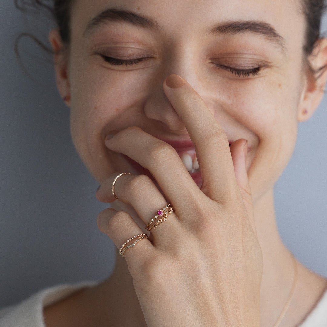 キャンドルを灯してゆっくりと過ごす大切なひととき。キャンドルの小さな炎をイメージした石座に1石のルビーをセッティング。小さな世界の中で、表情豊かに表現しました。