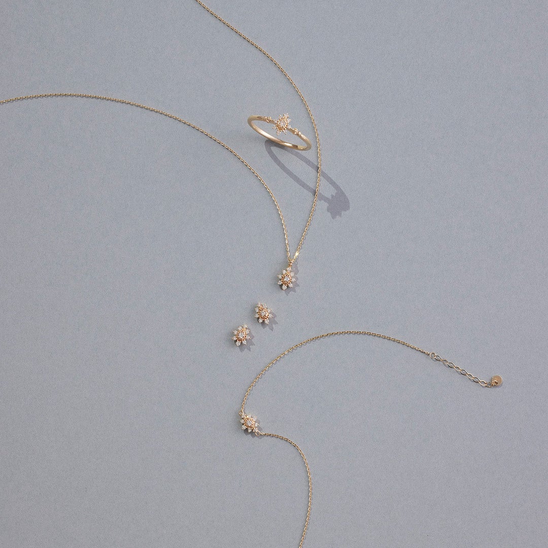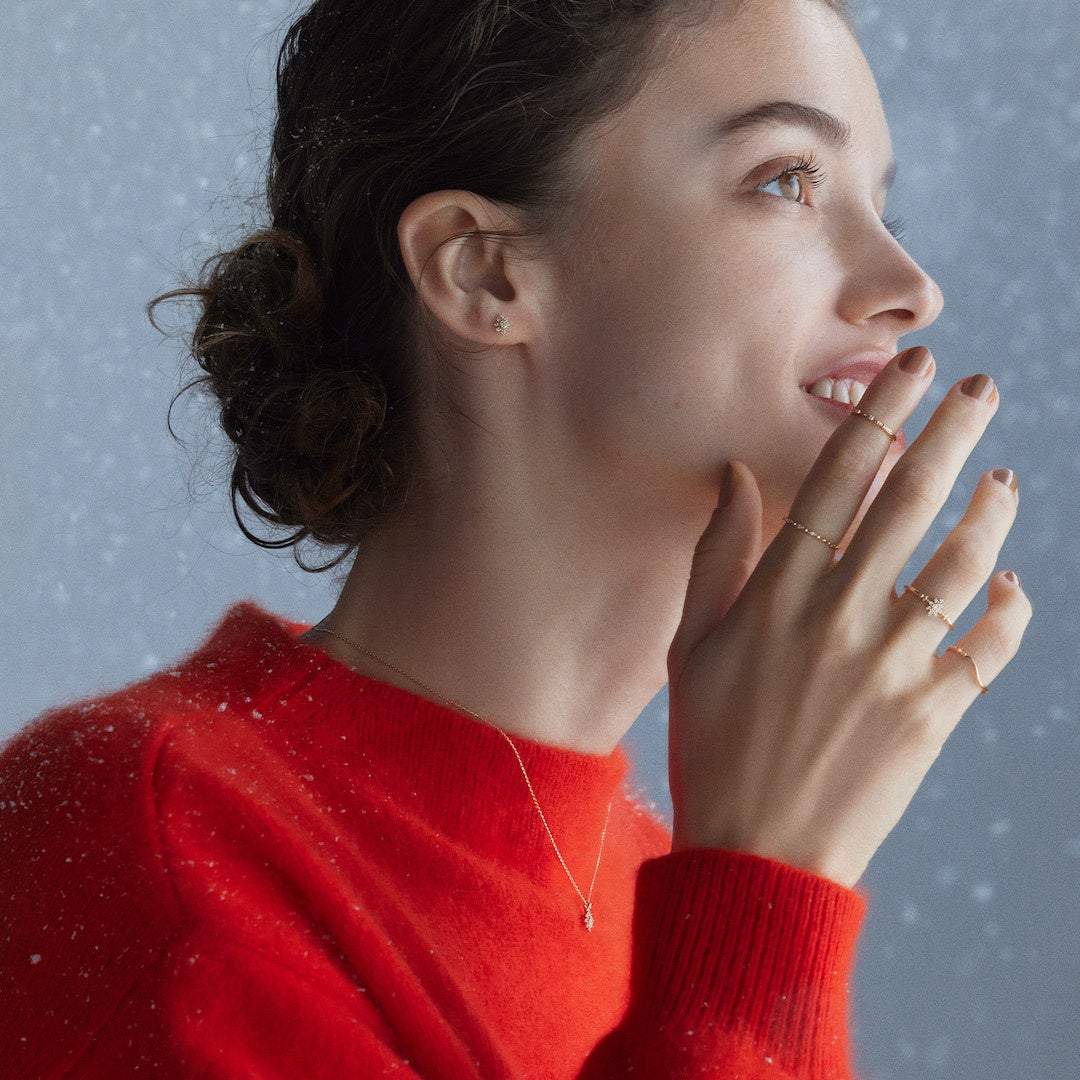 キャンドルの灯りに照らされる笑顔と幸せなひととき。キャンドルの炎が優しく揺らぐ様子を、ダイヤモンドの配置や留め方にこだわり繊細に表現したデザイン。見つめていると穏やかで温かい気持ちに包まれるような、スペシャルな輝きが魅力です。