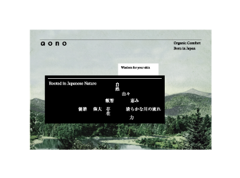 今回のPOP-UP STOREでは、aonoの持つ「日本」と「オーガニック」という要素を強く打ち出したオリジナルのキービジュアルや購入特典をご用意しました。アートディレクションは「Kamikene」が担当。オンラインマガジン『Nigh』のアートディレクションをはじめ、世界に流通するデザイン誌『+81』や、THE NORTH FACE、サカナクションなど数々のプロジェクトにおいて膨大なグラフィックワークを手がけてきたKamikeneとともに実現する今回の試みは、aonoにとって新たな挑戦となります。